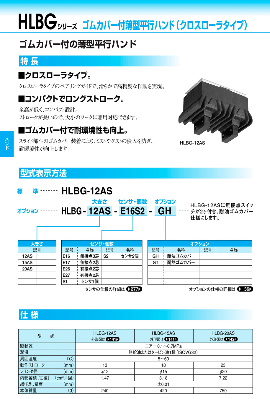 近藤帶橡皮套的薄型平行卡爪HLBG -15AS