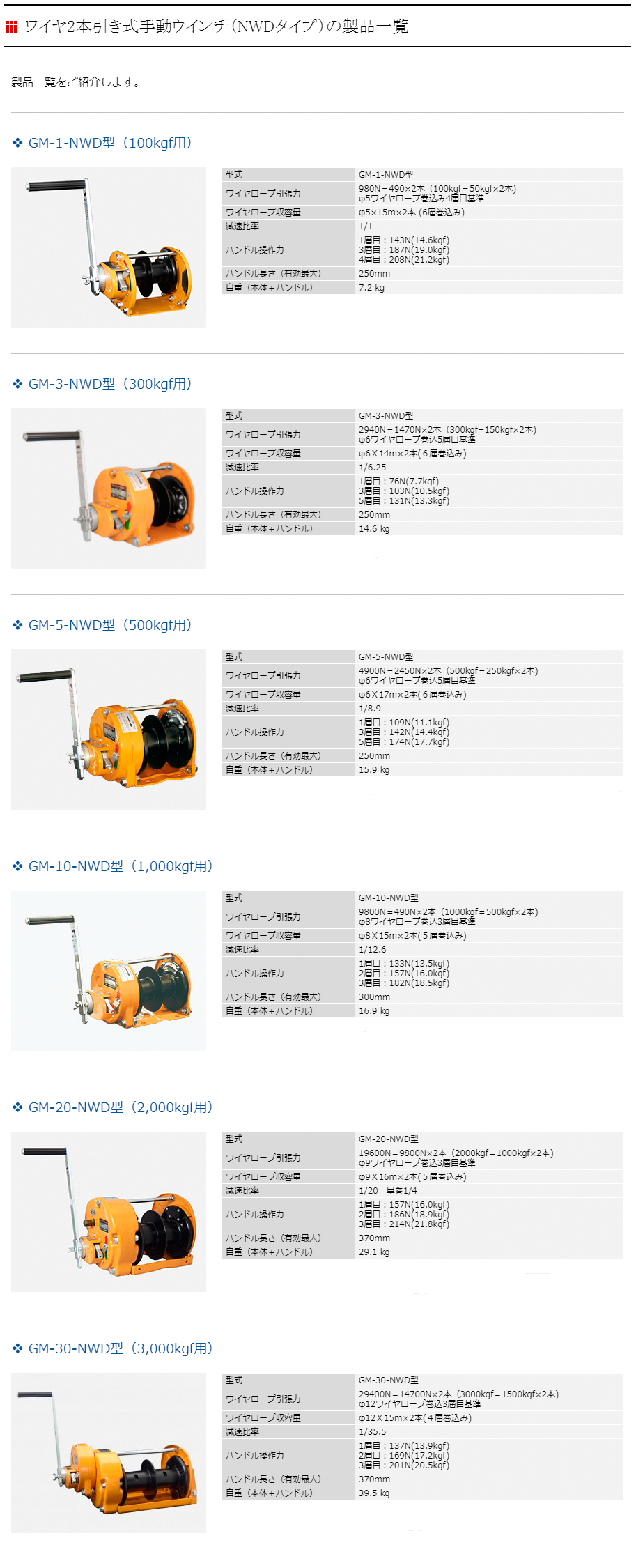 MAXPULL手動絞車GM-30-NWD型(3,000kgf用)