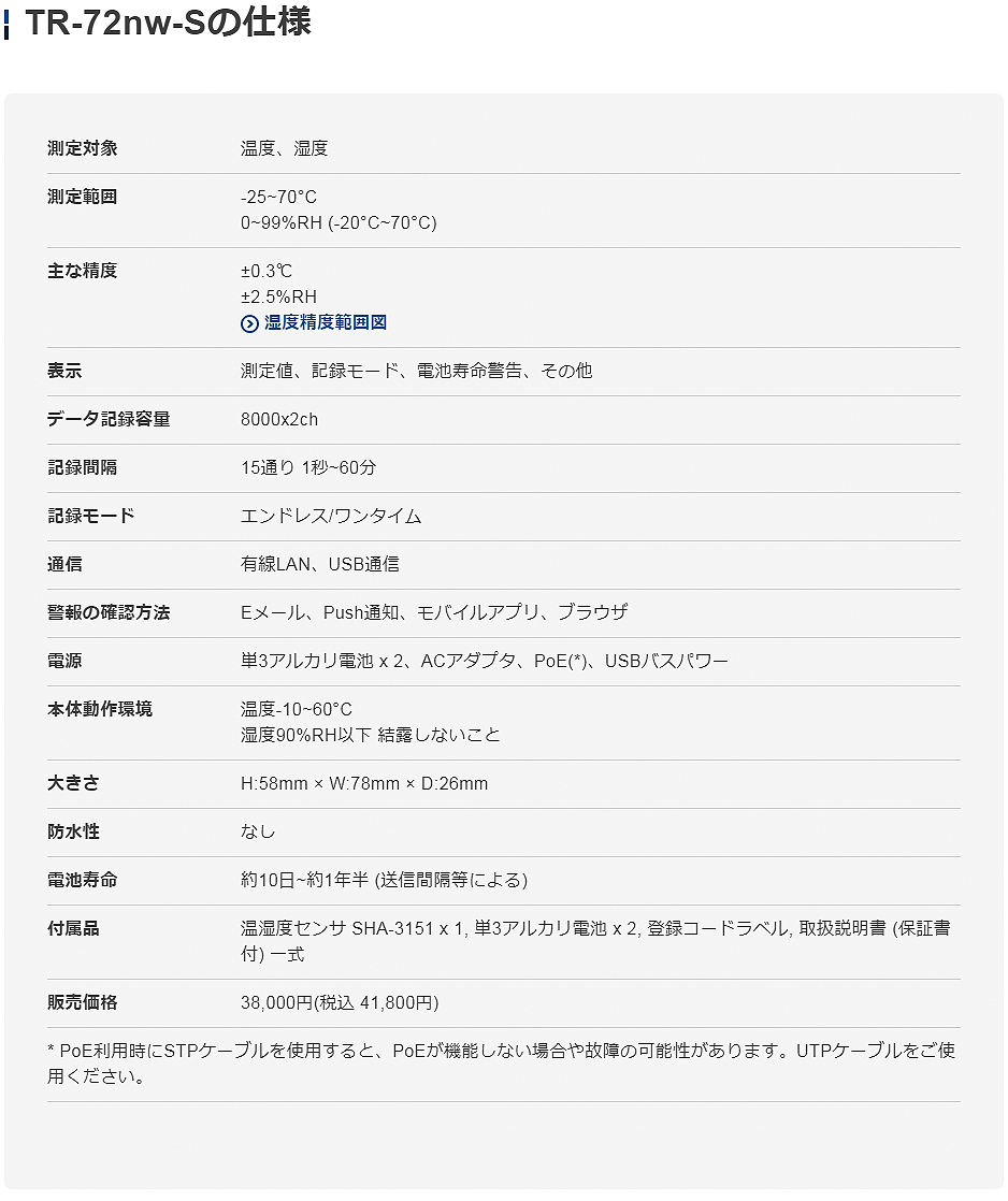 TANDD溫濕度數(shù)據(jù)記錄器TR-72nw-S