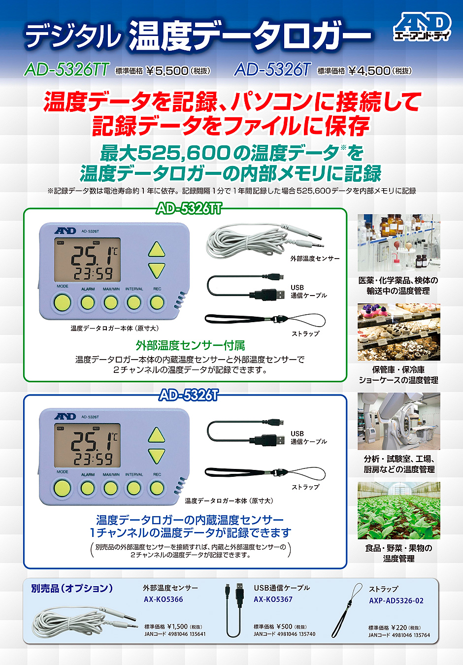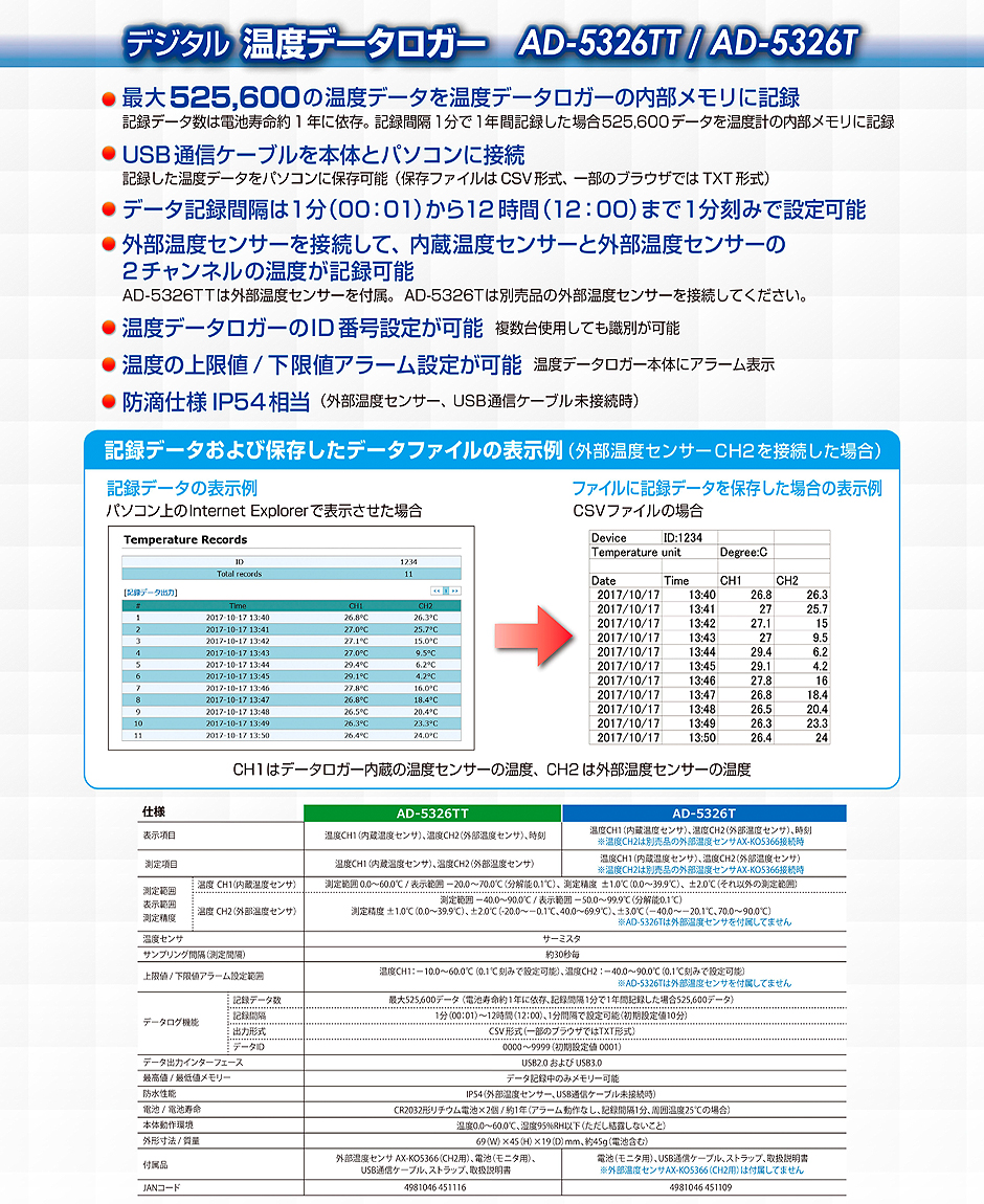 AND(A&D)數(shù)字溫度數(shù)據(jù)記錄器AD-5326TT