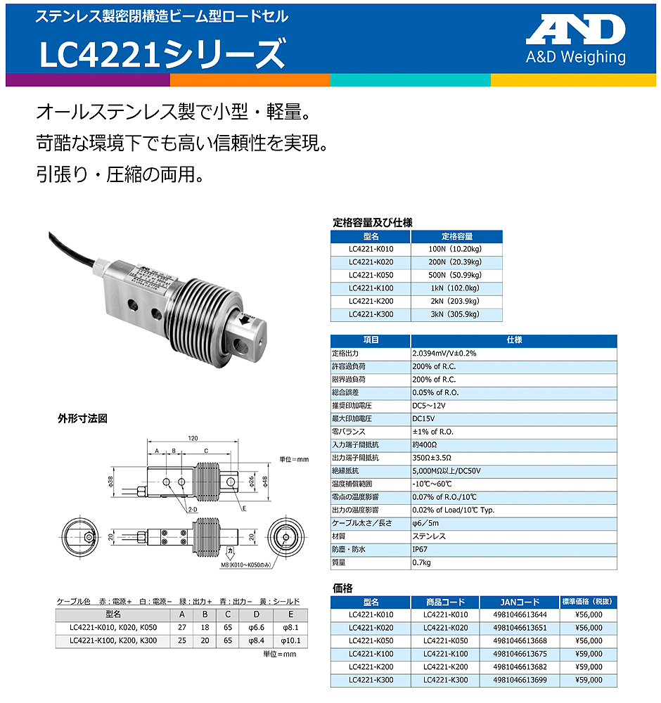 AND(A&D)負載傳感器LC4221-K050