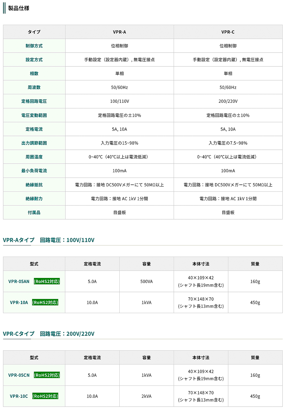 東京理工舍電力調(diào)整器VPR-10C