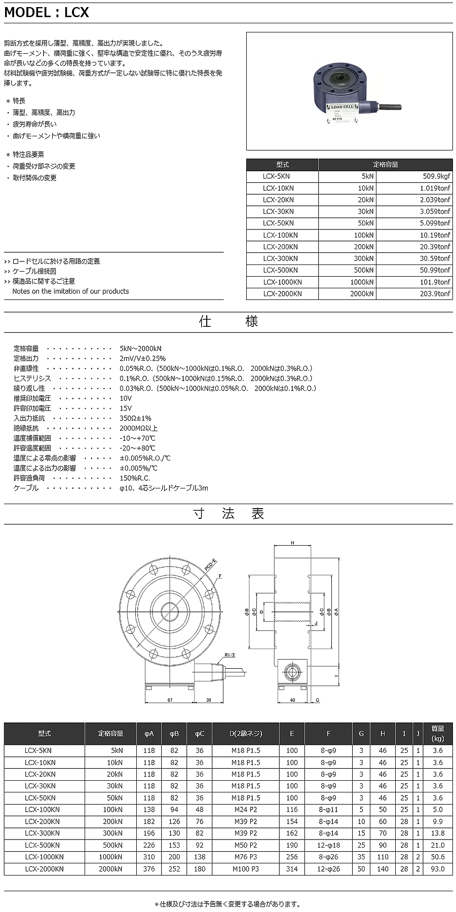 特殊測器荷重傳感器LCX-2000KN