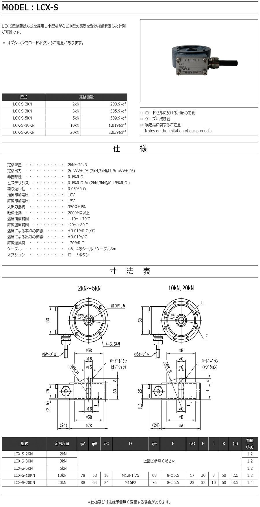特殊測(cè)器荷重傳感器LCX-S-5KN