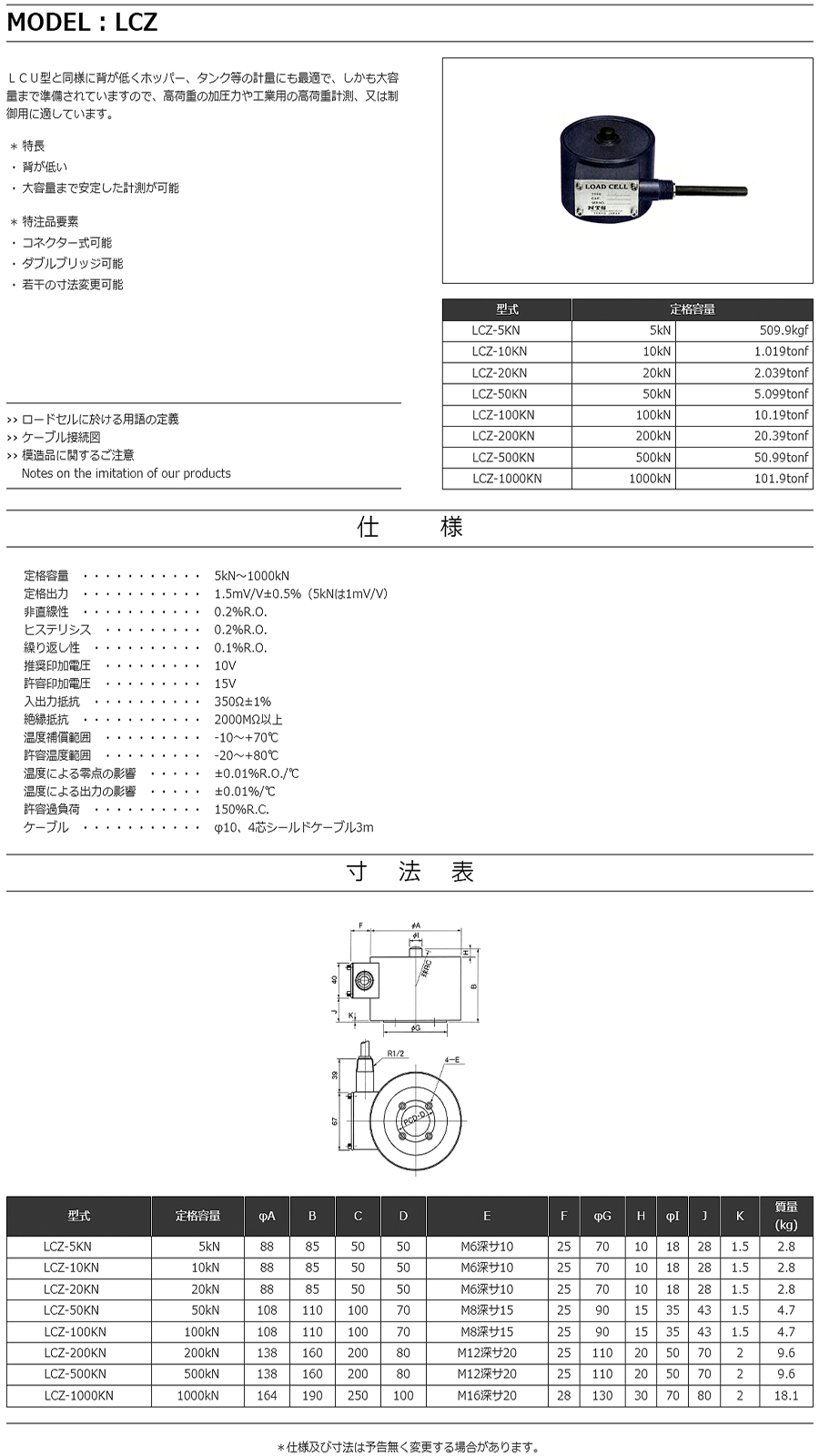 特殊測(cè)器荷重傳感器LCZ-20KN