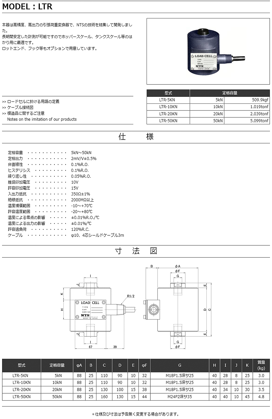 特殊測器高精度載荷傳感器LTR-5KN