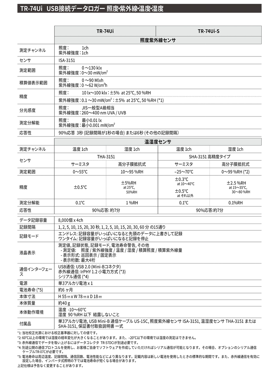 TANDD溫濕度計TR-74Ui